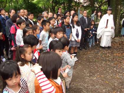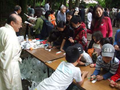 続きです。はじめの写真は、子どもたちが願い事を書いているところです。植えた「フタバアオイ」の近くに立てています。