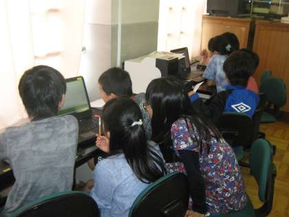 パソコンで画像を見ながら,どの建物を巡るか・どんな食事をとるか,を班で相談しました。