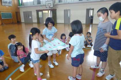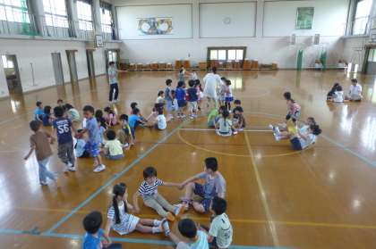 体育館でみんなで楽しく遊びながら,たくさん交流しました。