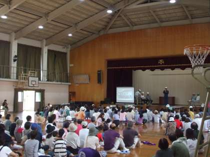 6月12日(日)に、紫竹小学校区の防災訓練が行われました。朝早くから、各町ごとに旗を持って紫竹小学校に集まる非難訓練を行い、学校では、子どもたちが教室から避難訓練をしました。子どもたちはその後、保護者へ引渡し、大きな災害時に確実に保護者へ引き渡す訓練も行いました。