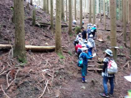 天狗杉登山に行きました。曇り空でしたが、涼しい中、山へ向かいました。天狗杉まではきつい登り坂がありしんどい登山でした。しかし、みんなで励まし合い登りきることが出来ました。