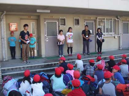 心配していた台風も東にそれ、爽やかな朝を迎えました。4年生は今日から2泊3日で「みさきの家」野外宿泊学習です。朝7時40分から出発式を行い、全員そろって元気に出発しました。今日から、「みさきの家」での活動を、このホームページでお伝えします。