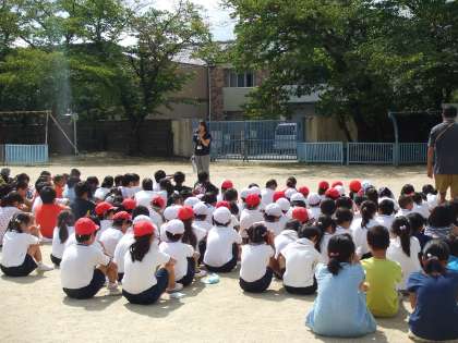 9月7日(水)の2校時に火災を想定した避難訓練を行いました。本来なら6月に行う予定でしたが雨のために行うことができませんでした。今回は給食室から出火したということで,どの学年も西側階段を使って運動場まで避難しました。全員が避難した後,校長先生から「自分たちの命を自分たちの力で守る」ことの大切さについてお話がありました。子どもたちも真剣に訓練をしていました。