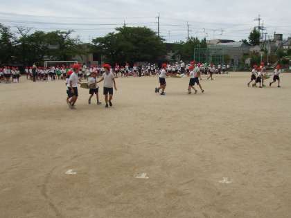今年の児童会種目は,「ボールを運べ!リレー」を行います。たてわりグループで,新聞紙のじゅうたんにボールを乗せて,ボールを落とさないように次のチームに繋いでいきます。高学年は低学年をリードしながら,ボールを運んでいました。チームの心を合わせることが大事な種目です。運動会当日も,低学年と高学年が仲良く競技に向かう姿が見られることと思います。楽しみです!