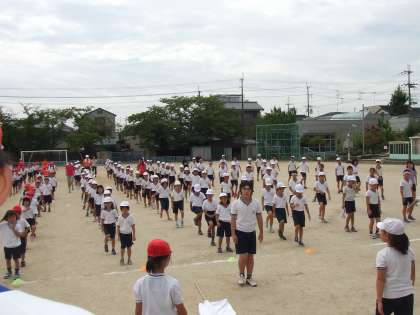 9月16日(金)の3.4校時に運動会に向けての全校練習がありました。今日は入場の仕方や開会式,応援練習を行いました。