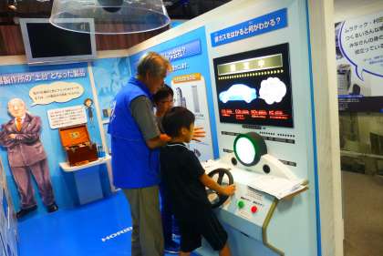 子どもたちの興味を引くしかけがたくさんあり,各会社の製品を見て興味深く調べていました。