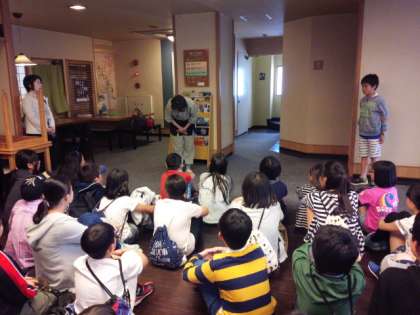 17時少し前に、今夜宿泊する、なごや花亭に到着しました。旅館でごろごろすることも、楽しみにしていた子どもたち。最高の笑顔で旅館に入りました。入館式は,緊張しながらもしっかり言葉を言うことが出来ました。