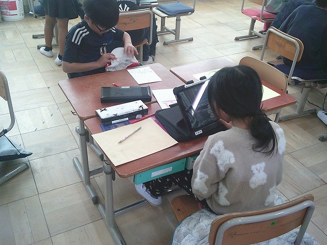 GIGA端末を使って写真を見直したり、インタビューしたときのメモを確認したりして、すてきなポスターになりました。