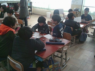 完成した詩をグループで交流したり、みんなの前で発表したりしました。タイトルや詩のかたち、言葉遊びなど、どんな工夫をしたか伝え合いました。