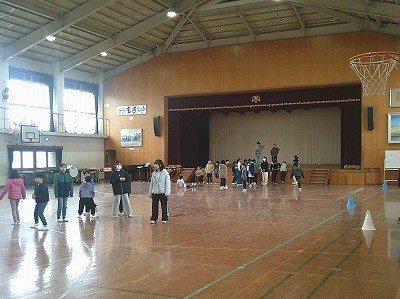 雪がちらついていましたが、運動場、体育館、教室、それぞれの場所から楽しむ声が聞こえてきました。