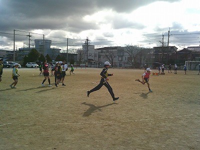 チームに分かれて、ゲームをしました。タグを取ったり、ボールをパスしたり、いい試合をしていました。