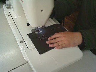 下糸や上糸の確認をし、おさえを下ろしてゆっくり進めました。どの子も慎重にていねいに進めていました。
