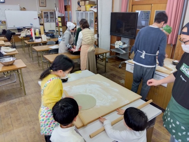 紫竹自治連合会、料理クラブによるそば打ち会が行われました。子どもたちや保護者、地域のみなさまが参加され、みなさんで協力してそば打ちをして、出来上がったそばを美味しくいただきました。そして最後に本日の活動の振り返りをしました。子どもも大人も笑顔一杯の1日になりました。紫竹自治連合会、料理クラブの皆様お疲れ様でした。