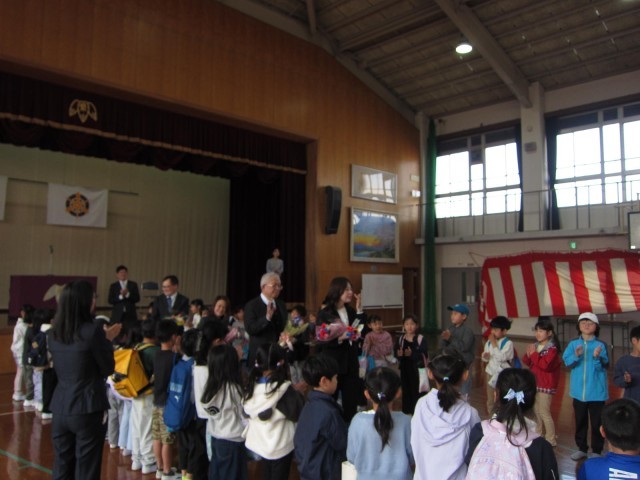本日、教職員と管理職合わせて11名が離任しました。今日の離任式には6人の離任者に参列していただきました。春休み中にも関わらず、多くの児童と卒業生、保護者、地域の皆様が参加し、離任する教職員に感謝の気持ちを表しました。離任される教職員の皆様、新しい場所でもお元気にご活躍されることを願っています。ありがとうございました。