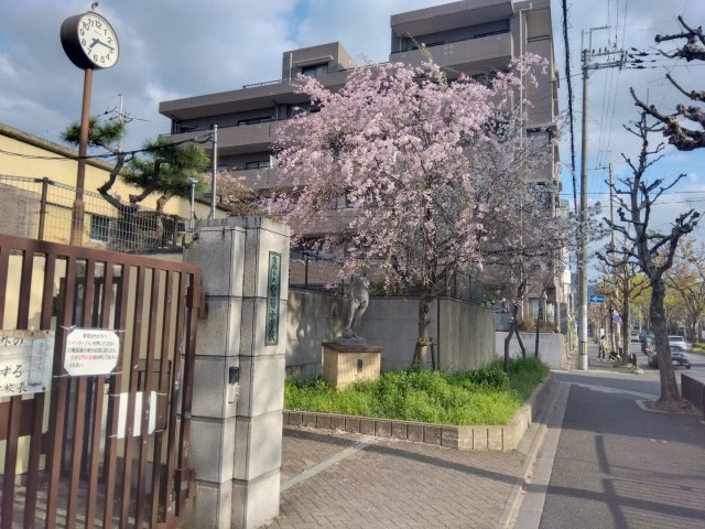 正門横の枝垂れ桜が新入生、在校生の登校を心待ちにしているように満開です。学校では本日も教職員が各担当で入学式、始業式、学級開きの準備をしました。教職員一同、新入生、在校生が元気に登校してくれるのを心待ちにしています。