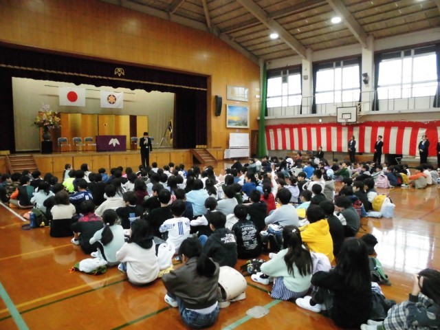 今年度、紫竹校では11名の教職員を新たに迎えました。子どもたちは、どんな先生、教職員の方が来たのか興味津々の様子でした。子どもたちは一人一人の紹介に心を込めて拍手をして、着任した教職員を温かく迎えてくれました。始業式では校長先生から、転入してきた新しいお友だちの紹介。新学年を迎える皆さんへのお祝いのお話。今年、校長先生、教職員と紫竹校の子どもたちとで一緒に取り組んでいきたいことの話。今年の担任の先生と教職員の皆さんの紹介の4つの話がありました。どの子も学年が一つ上がり、みんな「会話のキャッチボール」でしっかりと校長先生の話をキャッチして、聞き取る様子が印象的でした。