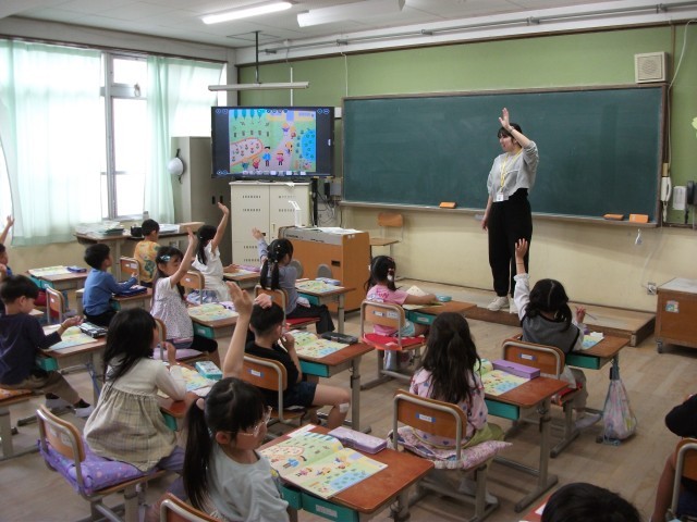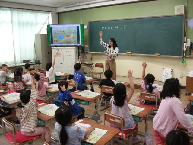 教科書の絵の中から、学校に行くまでの道のりに「何がいくつあるのか」をみんなで見つけました。絵をよく見て、絵の中からたくさん見つけることができました。