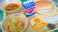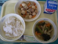 今日の給食はけいにくととうふのくずにほうれんそうときりぼしだいこんのごまにむぎご...