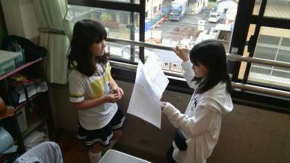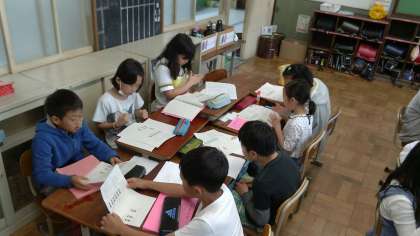 なかには休み時間に友達に頼んで学校紹介などのことばの練習をする姿もありました。
