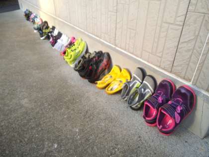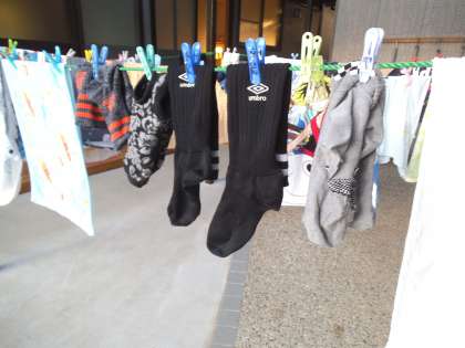 宮崎浜から帰ってくると,靴や靴下の中に砂が入っています。その砂を落として洗い,干しておきました。帰りまでには少しでも乾いてほしいです。