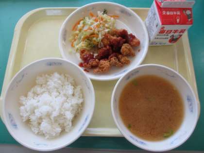 カリっとしたチキンカツにソースがよく合い,子どもたちはあっという間に食べ終わっていました。
