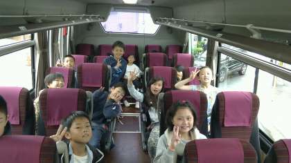 バスで鷹峯小を出発!