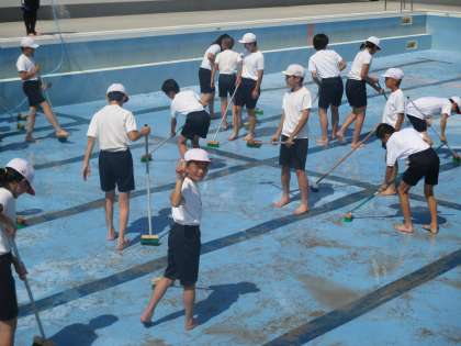 今日6年生はプール掃除をしました。みんなが学習で使うプールです。一生懸命磨いてくれました。