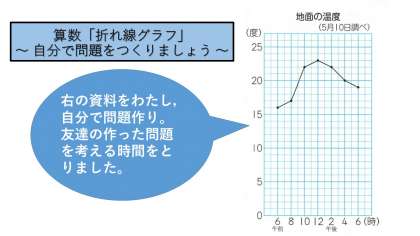 この日は上のような折れ線グラフから自分で問題を作り,その問題をグループで考えました。
