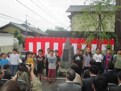 今日11時から琳派400年記念碑除幕式がありました。京都市長門川大作様や市田ひろみ様をはじめ鷹峯自治連合会の方や本校PTA会長も含め多くの方が出席されました。