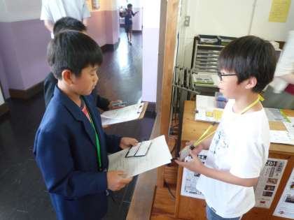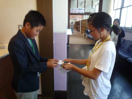 お仕事は接客やサービスなど様々な仕事内容があります。会社間取り引きでは名刺交換をして,書類を渡してお仕事の依頼や契約をします。仲良しの友達でも丁寧な言葉遣いで話さなければなりません。照れながらも言葉遣いに気をつけて対応していました。