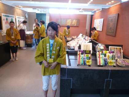 お客さんに興味をもってもらい,少しでも売り上げをあげようと様々な工夫をしていました。店先で呼込みをしたり商品の良さをお客さんに伝えたりしていました。お客さんに聞かれたことには,丁寧に受け答えすることができていました。