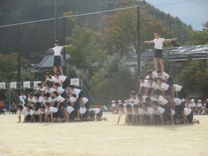 組体操では1か月間の練習の成果を発揮し,今までで一番よい演技ができたと思います。すばらしい集中力で力を合わせてくれたと思います。