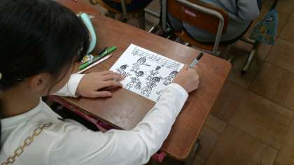 この日は学芸会のプログラムに乗せる挿絵を4年生で描きました。