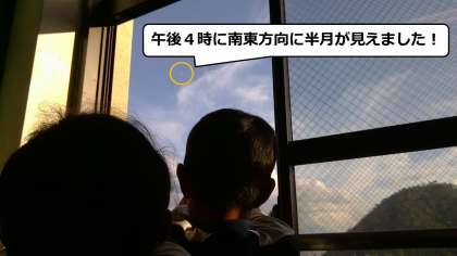 それでも,放課後学習をしていたときに空を見上げてみると,なんと半月が!!
