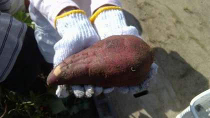 きらりタイムの学習で育てていたさつまいもを収穫しました。大きなさつまいもが収穫できてうれしそうな子どもたちでした。