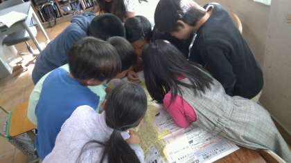 社会で自分たちの鷹峯校区の交通事故の起きやすそうな場所や危ないと思う場所をグループで話し合い校区地図にまとめていきました。