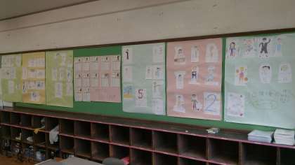 朝鮮初級学校との交流会で作成した「10年後のぼく・わたしへのエール」を掲示しています。