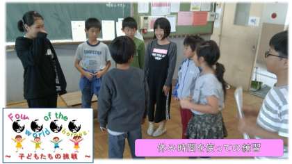 舞台上で実際に動きながらの練習です。この時間に向けて,子どもたちながらに動き方について相談はしてきていました。