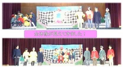 この日,初めて本番と同じように衣装を着て背景を使って練習をしました。