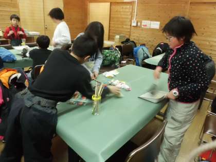 自分の竹箸が早く完成した人は,言われなくても自分から掃除をし始めました。机の下や床に落ちてしまった竹屑も丁寧にはいてくれていました。きちんとしようとする姿を見てうれしくなりました。この3泊4日でそういう姿をたくさん見つけて褒めていきたいと思っています。