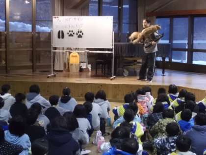朝方は少し寒く感じられましたが,しっかりと寝ることができていた子が多く,朝の目覚めもよかったです。一緒に花背山の家で過ごしている4つの学校が集まり朝の集いを行いました。鷹峯校を代表して,二人の女の子が学校紹介をしてくれました。大きな声がホールに響きわたっていました。