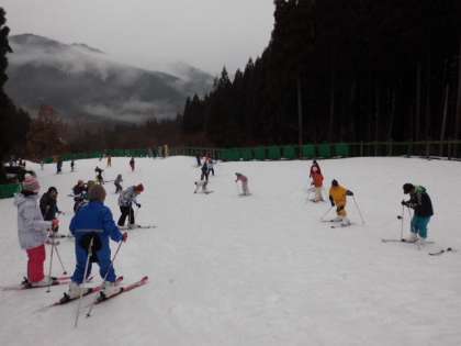 何回も滑り楽しんでいましたが,その度にスキー板をはいたまま山を登らなくてはいけません。「登るのしんどいし嫌。でも登る。」という子と,「少し休憩。」という子も出てきました。でも,「あと15分で終了!」の指示が出ると「あと2回滑りたい。」と最後までスキーを楽しむことができました。子どもたちの上達が早くて感心させられました。