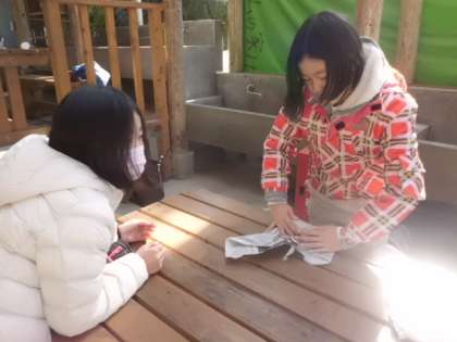 さて,次は焼き芋です。サツマイモを新聞新にくるみ,水で濡らします。その上からアルミホイルで丁寧に巻きました。