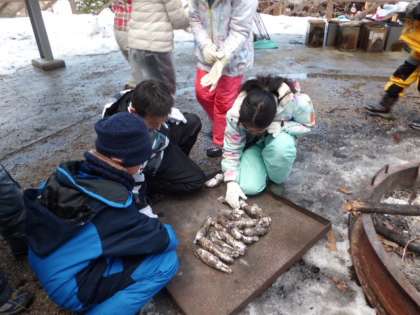 30分ほどで焼き芋が出来上がりました。1本を2人で分けて食べました。