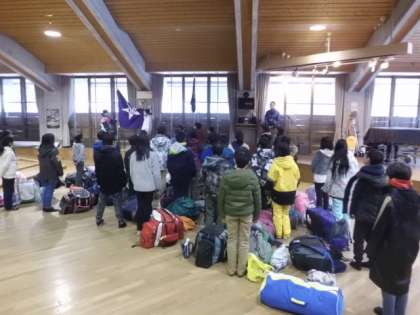 いよいよ退所式です。出発する時には,大勢の所員さんたちが最期まで見送って下さいました。今回の3泊4日の活動では,様々な準備や指導,お手伝いなどのサポートをしていただきました。お蔭様で子どもたちが充実した活動ができたことを感謝したいと思います。ありがとうございました。