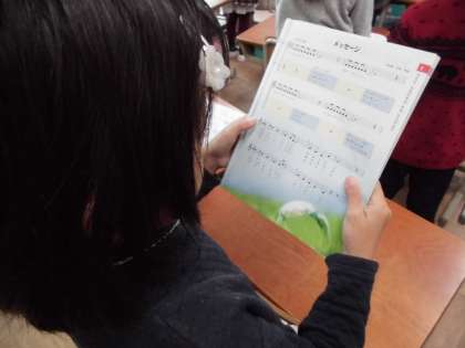 2年生の明るい歌声が,教室に響き渡ります。子どもたちは,新しく習う歌を一生懸命覚えて歌っていました。みんなで声を合わせると,気持ちがいいですね。