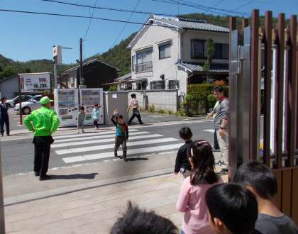1年生の子どもたちを対象に,交通安全教室がありました。安全に登下校できるように,路側帯の歩き方や,信号のない横断歩道の渡り方を練習しました。今日ならったことを覚えておいてくださいね。