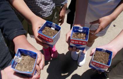 4年生の子どもたちが,牛乳パックの中に土を入れて,わくわくした様子で歩いていました。「ツルレイシを育てます。」「ツルレイシは,ゴーヤに似ているらしいです。」「理科の学習で,育てます。」と話をしてくれました。どんなふうに育っていくのでしょうか?楽しみですね。