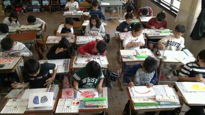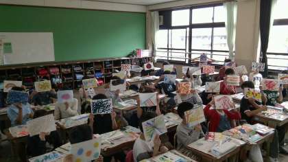 図工で絵の具を使って,いまの自分の気持ちを表現する「心のもよう」を描きました。