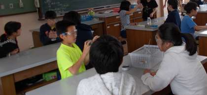 理科「ものの燃え方」の学習をしています。理科室で,どんな実験をしているのでしょうか?6年生のお兄さん・お姉さんに聞いてみてくださいね。